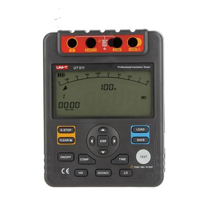 میگر 1 کیلو ولت یونیتی مدل UT511 از سری میگر های حرفه ای از کمپانی یونیتی هنگ کنگ است که دارای نمایشگر حرفه ای با نوار بارگراف بوده و قابلیت ذخیره سازی مقادیر تا 18 داده اندازه گیری را دارا می باشد. تستر مقاومت عایق یونیتی مدل ut511 مناسب برای تست و اندازه گیری مقاومت عایقی تا 10 گیگا اهم با ولتاژ تست تا 1000 ولت است و علاوه بر آن دارای توابع ویژه نظیر PI و DAR و همچنین قابلیت اندازه گیری مقاومت الکتریکی در رنج های پایین می باشد. خاموشی اتومات، نور پس زمینه و نشانگر میزان شارژ باتری از دیگر ویژگی های میگر 1000 ولت یونیتی ut511 می باشد.