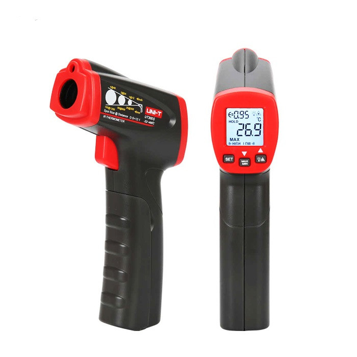 ترمومتر لیزری یونیتی مدل UT300S یک دماسنج لیزری دقیق محصول کمپانی یونیتی هنگ کنگ است که مناسب برای اندازه گیری دما به روش غیر تماسی است که قابلیت اندازه گیری دما در محدوده -32 تا 400 درجه سانتی گراد را با دقت اندازه گیری 2 درجه سانتی گراد دارا می باشد. رزولوشن این دماسنج غیر تماسی دقیق 0.1 درجه سانتی گراد بوده و حساسیت آن قابل تنظیم است. نحوه کار دماسنج لیزری یونیتی بسیار ساده می باشد، بدین صورت که با هدف گیری به سمت نقطه مورد اندازه گیری و فشردن ماشه، میزان دما بر روی نمایشگر نشان داده می شود.