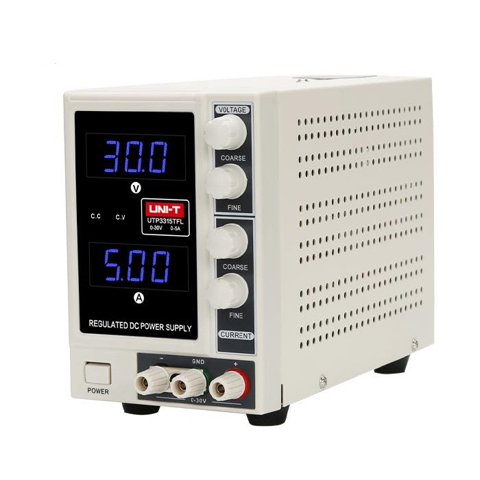 منبع تغذیه تک کانال یونیتی مدل UTP3315TFL یک منبع تغذیه با نمایشگر های مجزا برای ولتاژ و جریان است که مناسب برای استفاده در مدارات DC به عنوان منبع تامین کننده انرژی است و دارای خروجی ولتاژ 0 تا 30 ولت و خروجی جریان 0 تا 5 آمپر به صورت متغیر می باشد. منبع تغذیه 30 ولت 5 آمپر یونیتی می تواند مقدار ولتاژ را با وضوح 0.1 ولت و مقدار جریان را با وضوح 0.01 آمپر نمایش دهد. همچنین دارای یکسال گارانتی می باشد.