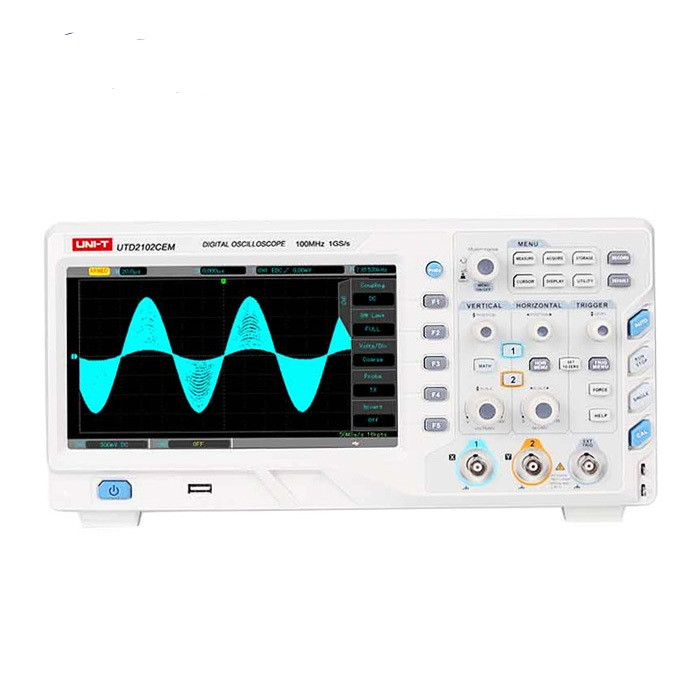 اسیلوسکوپ حافظه دار یونیتی مدل UTD2102CEM با ویژگی های طراحی ارگونومیک، صفحه نمایشگر 8 اینچی TFT، نور پس زمینه، ذخیره تنظیمات، دارای رابط OTG و USB برای انتقال اطلاعات و ارتقا نرم افزار سیستم اشاره کرد.این اسیلوسکوپ جزء سری UTD2000CEM است اسیلوسکوپ یا نوسان نما دستگاهی برای نمایش شکل موج های نوسانی است. این محصول دارای ۲ کانال می باشد و توانایی متصل شدن به رایانه را به وسیله ی کابل USB دارد و همچنین دارای حافظه ای برابر با ۱۰۰ مگاهرتز می باشد.