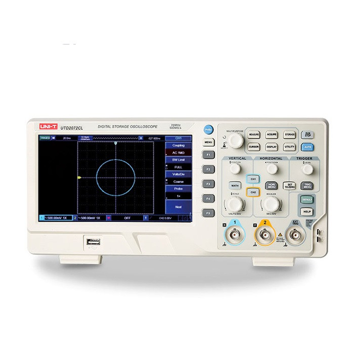 اسیلوسکوپ حافظه دار دیجیتال یونیتی مدل UTD2072CL یا نوسان سنج ذخیره سازی قابلیت نمایش سیگنال های ورودی در برابر زمان و یا بررسی سیگنال های مختلف ورودی با یکدیگر می باشد. در اسیلوسکوپ، دامنه ی سیگنال در نموداری دوبعدی نمایش دادهمیشود که محور افقی، زمان و محور عمودی، مقدار ولتاژ است. از اسیلوسکوپ برای نمایش دقیق شکل موج استفاده میشود. علاوه بر دامنه، اندازهگیری دیگر پارامترهای سیگنال مانند عرض پالس، دوره تناوب و فاصله زمانی دو رویداد در سیگنال (مانند وقوع دو پیک) نیز بر روی نمایشگر اسیلوسکوپ ممکن است. اسکوپ ها کاربرد های فراوانی همچون آنالیز داده های سریالی ،انالیز لرزش ها ، تست کردن دستگاه ذخیره اطلاعات،وسایل الکتریکی و تجهیزات الکترونیکی،سنجش فرکانس برگشتی از تجهیزات صوتی، عیب یابی از موتور خودروها، نگهداری و تعمیر وسایل الکترونیکی توسط تکنسین های برق را دارد.