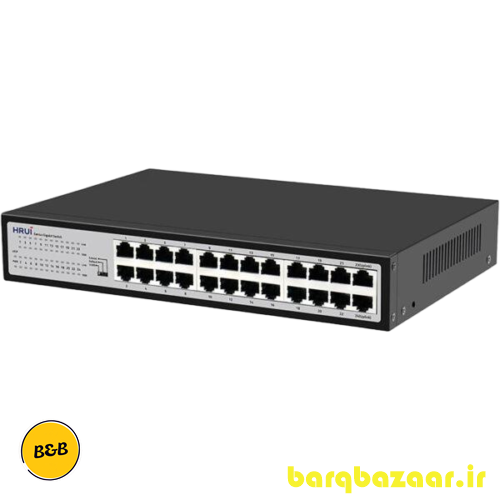 سوئیچ HRUI مدل HR-SWG10240D یک سوئیچ شبکه اترنت غیر مدیریتی گیک و دارای 24 پورت گیک است. همچنین پهنای باند این سوئیچ 48 گیگابایت است که می تواند به خوبی وظیفه انتقال داده های شما را انجام دهد. تعداد مک آدرس های دستگاه میزان 2 هزار عدد و عمر مفید این دستگاه در حدود 100000 ساعت میباشد.