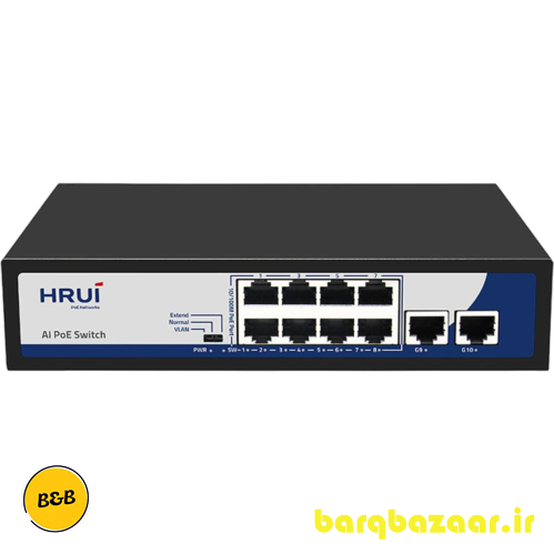 سوئیچ HRUI مدل HR900-AF-82GN یک سوئیچ غیر مدیریتی 8 پورت است. این سوئیچ قابلیت POE دارد. همچنین پهنای باند این سوئیچ 5.6 گیگابایت است که می تواند به خوبی وظیفه انتقال داده های شما را انجام دهد. تعداد مک آدرس های دستگاه میزان 2 هزار عدد و عمر مفید این دستگاه در حدود 100000 ساعت میباشد.