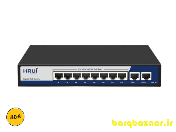 سوئیچ HRUI مدل HR901-AFG-82N یک سوئیچ غیر مدیریتی 8 پورت است. این سوئیچ قابلیت POE دارد. همچنین پهنای باند این سوئیچ 20 گیگابایت است که می تواند به خوبی وظیفه انتقال داده های شما را انجام دهد. تعداد مک آدرس های دستگاه میزان 2 هزار عدد و عمر مفید این دستگاه در حدود 100000 ساعت میباشد.