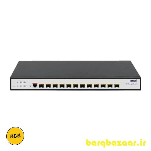 سوئیچ HRUI مدل HR-SWTG3C12F یک سوئیچ 12 پورت مدیریتی است. این سوئیچ قابلیت POE دارد. همچنین پهنای باند این سوئیچ 240 گیگابایت است که می تواند به خوبی وظیفه انتقال داده های شما را انجام دهد. تعداد مک آدرس های دستگاه میزان 2 هزار عدد و عمر مفید این دستگاه در حدود 100000 ساعت میباشد.