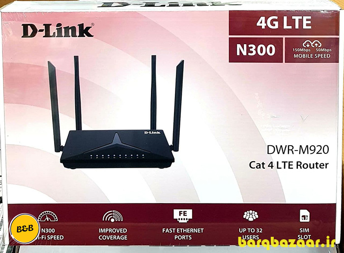 روتر بی سیم 4G/LTE دی-لینک مدل DWR-M920 محصولی از شرکت «دی- لینک » است. این روتر شرکت دی-لینک دارای یک درگاه برای نصب سیمکارت است که میتوانید از سیمکارت تمام اپراتورها استفاده کنید. در کنار شیار سیمکارت، چهار درگاه LAN وجود دارد که میتوان از آن برای اتصال باسیم ابزارها به شبکه بیسیم استفاده کرد. همچنین این دستگاه میتواند از طریق اتصال WAN به اینترنت فعلی شما وصل میشود. این اتصال میتواند شامل یک اینترنت پهنباند باشد که به وسیله آنتنهای پوینت تو پوینت (P2P) وایرلس دریافت میکنید یا همان اتصال ADSL خانگیتان که مدتها از آن استفاده کردهاید. برای این دستگاه چهار عدد آنتن در نظر گرفته شده است که دوتای آنها برای اتصال آنتنهای 3G/4G است و دو تای دیگر برای آنتنهای شبکهی وایفای هستند. در قسمت پشت روتر DWR-M920 کلیدهای WPS و Reset و کلید روشن و خاموش قرار گرفته است.